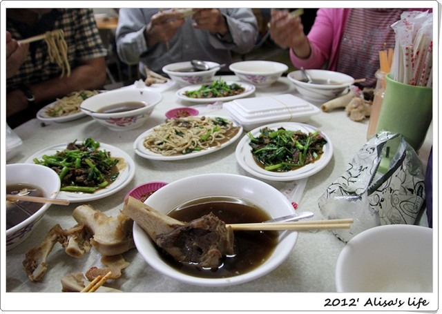 我們有五個大人..點了五碗羊骨湯+2盤炒麵+3盤炒羊肉.(保麗龍盒裝的是去附近小吃部買的飯)