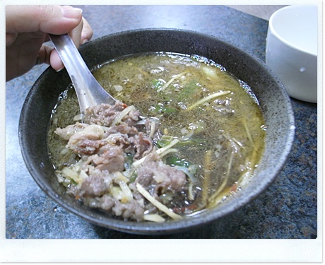 一碗裡會有兩三隻羊大骨..這湯熬煮很久..喝起來的味道是我能接受的味道.