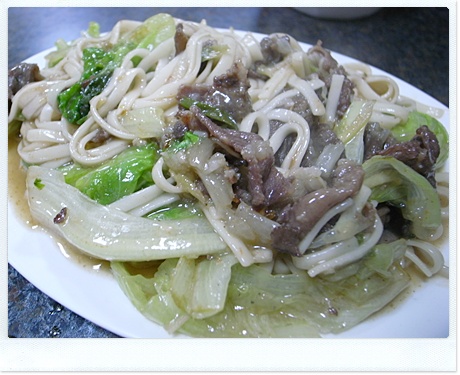 它的麵條是屬於比較Q的大麵條..我小弟和老媽覺得這炒麵不太好吃..但我老爸就很愛這味.我自己也覺得滿好吃的..