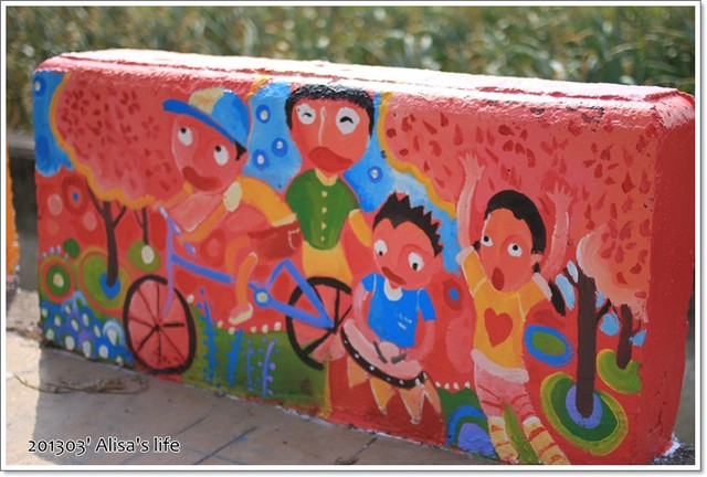 靠近馬光國中前的小水泥牆有畫上可愛的彩色圖畫..可愛極了!