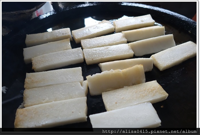 煎盤上有煎得恰恰的粿..看起來很好吃的樣子~