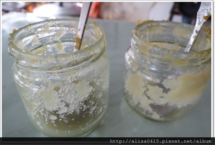 這煎盤粿最精華的地方.就是要淋上甜而不膩的糯米醬.超好吃的啦!加上滷大腸、米腸、香腸..份量都可以隨意的點..我都點10元粿+10元大腸+10元香腸.只要30元就可以吃得很滿足了!